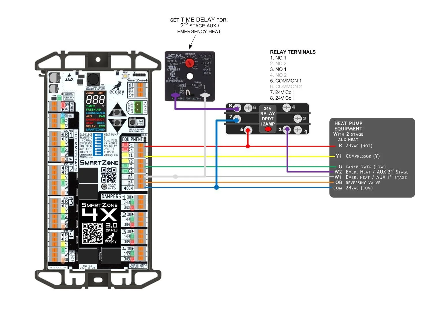 Although this article is about a specific application, the wiring diagrams below can be used for any Heat Pump system with 2 stages of AUX (Auxiliary / Emergency) Heat.
